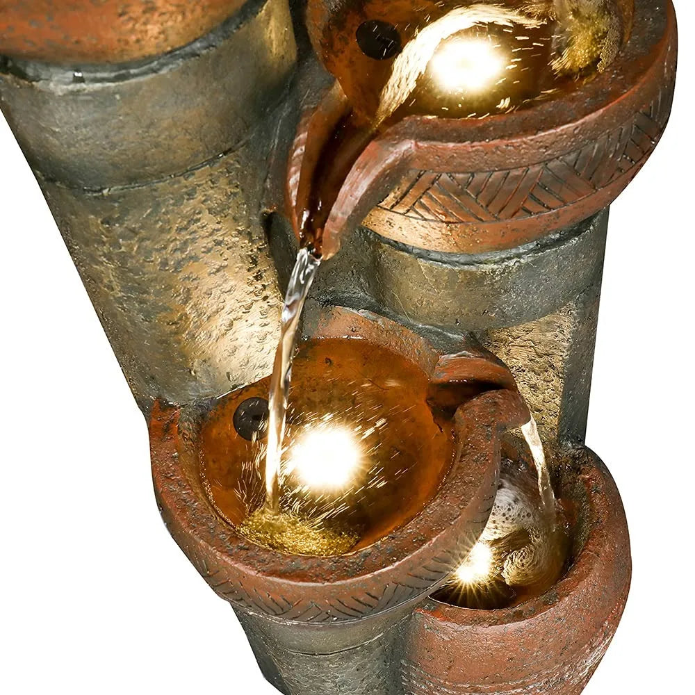 - Lighted Outdoor Fountain: Resin construction large outdoor water fountain is lightweight and portable for moving to inside or outside. Easy to place it everywhere you want to create an artistic and relaxing natural scene.