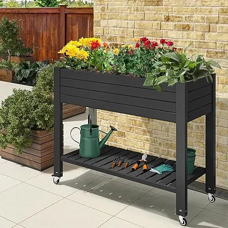 Outdoor Large Resin Patio Planter Box Stand Elevated Raised Garden Bed w/ Wheels plant shelves plant stands for Plants
