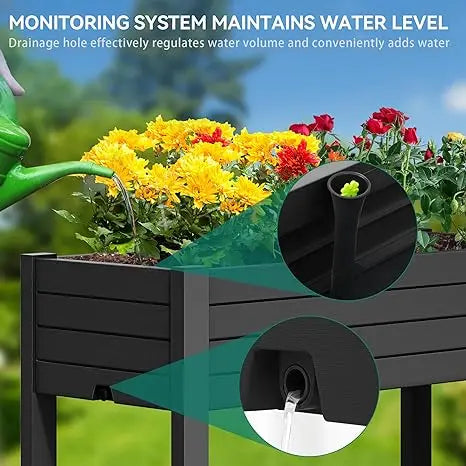 MONITORING WATER LEVEL SYSTEM- Our elevated garden bed can monitor the floating water level; The side drain hole drains water; The center partition effectively separates soil and water to keep soil fresh and protect plants from water logging